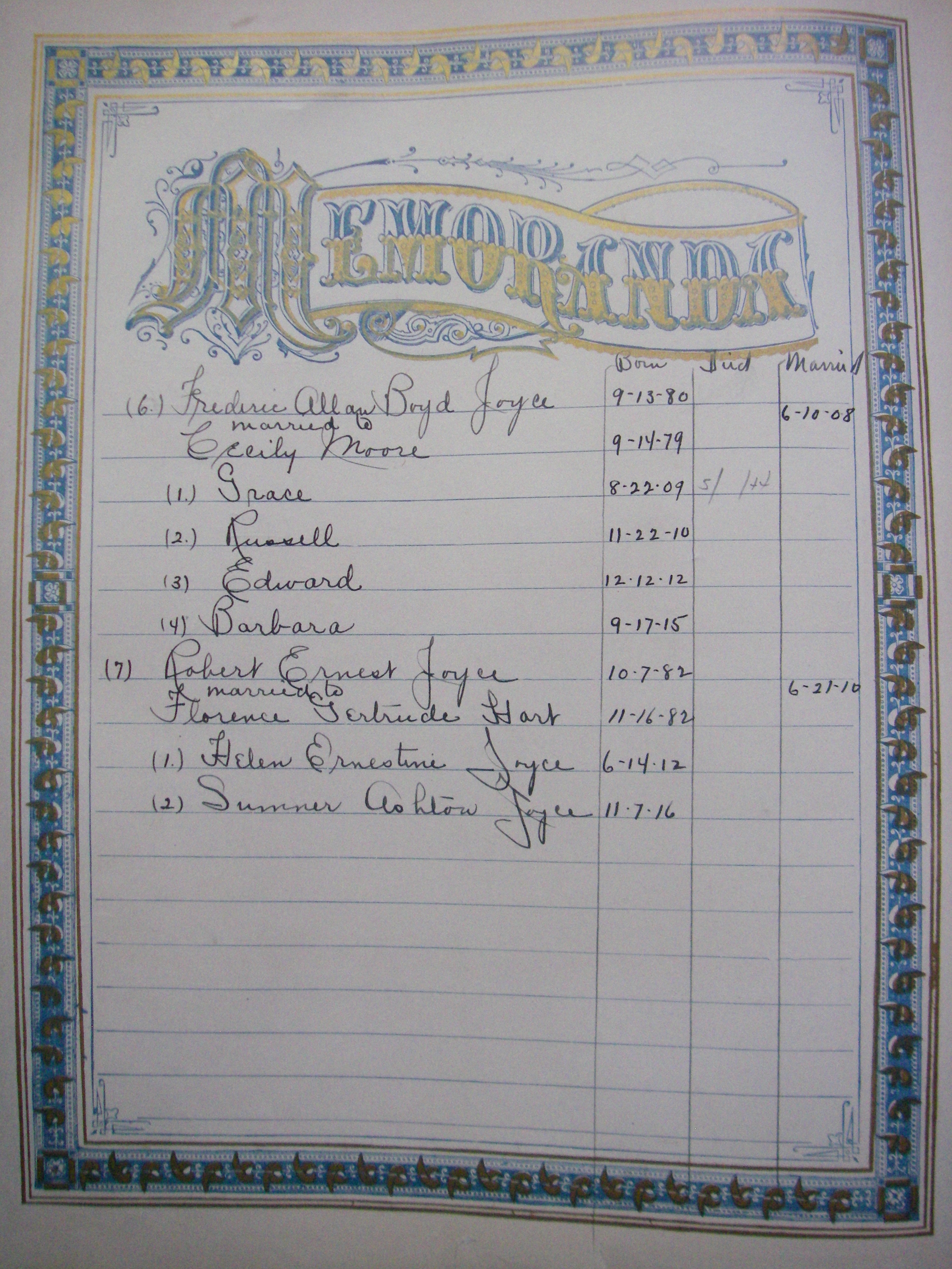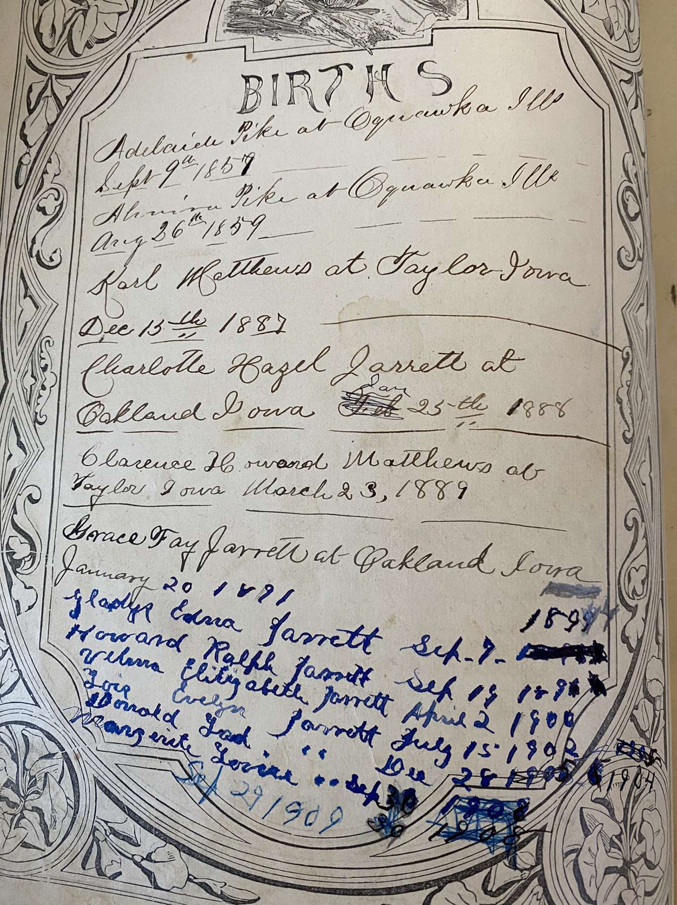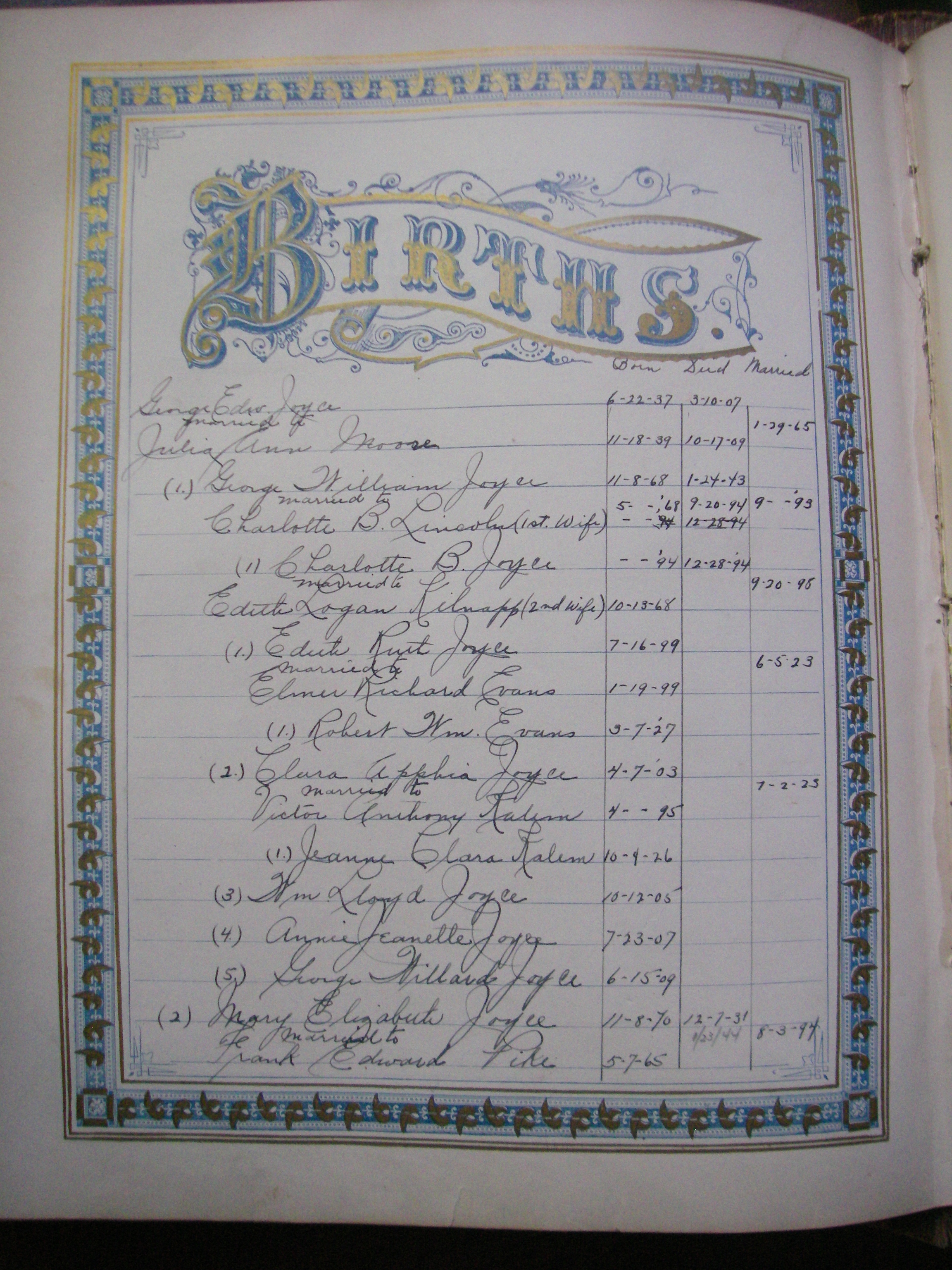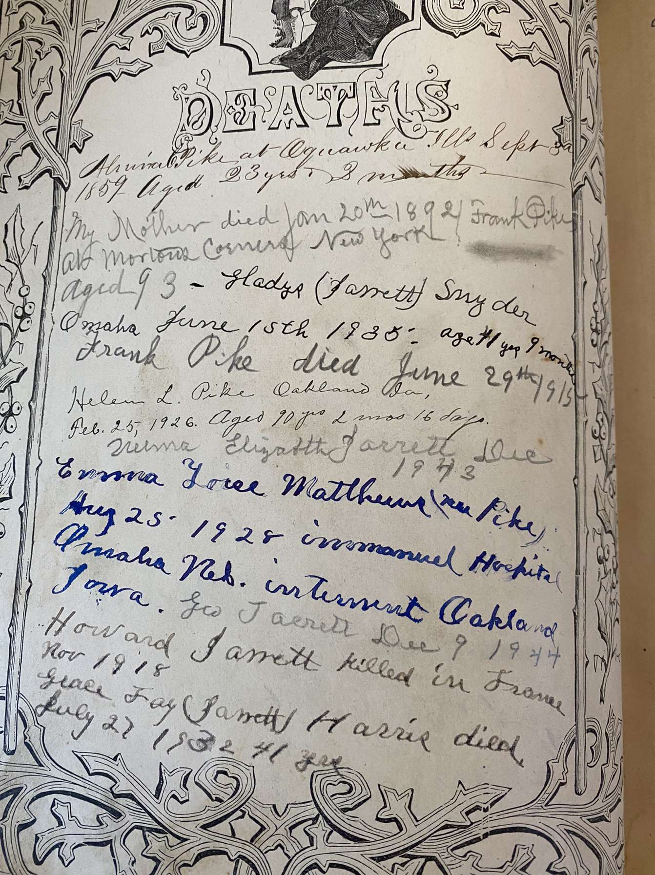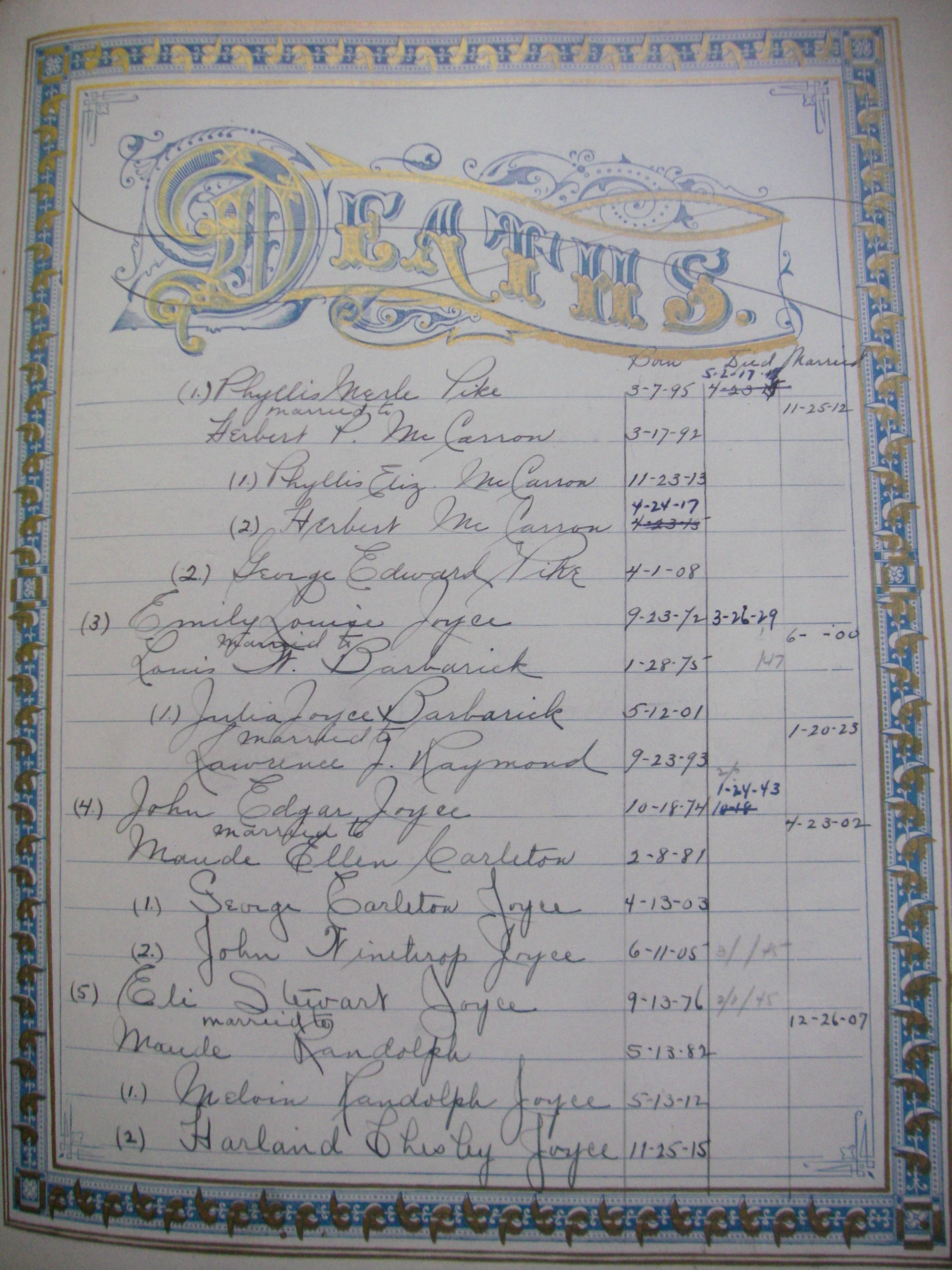 of a Pike and Joyce family Bible, provided by Charlie Pike.
