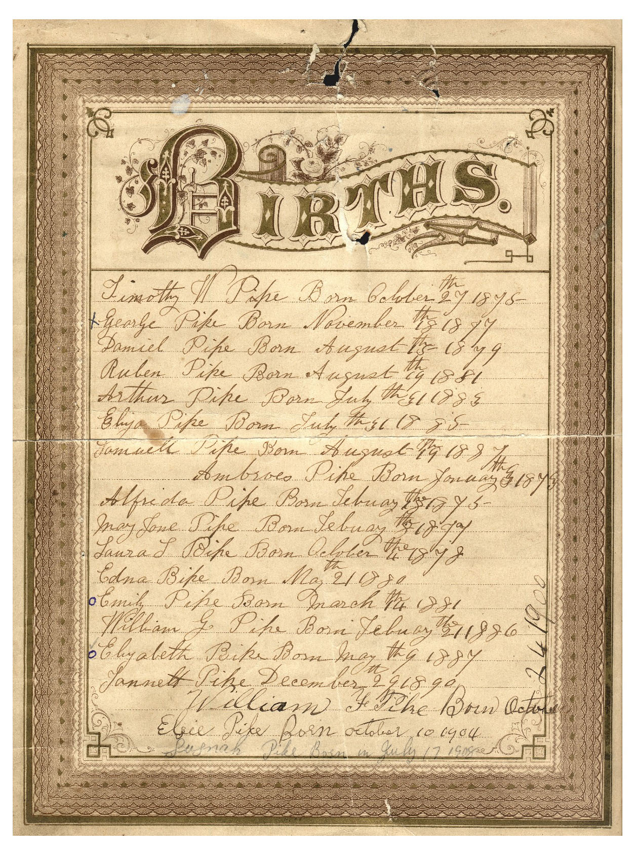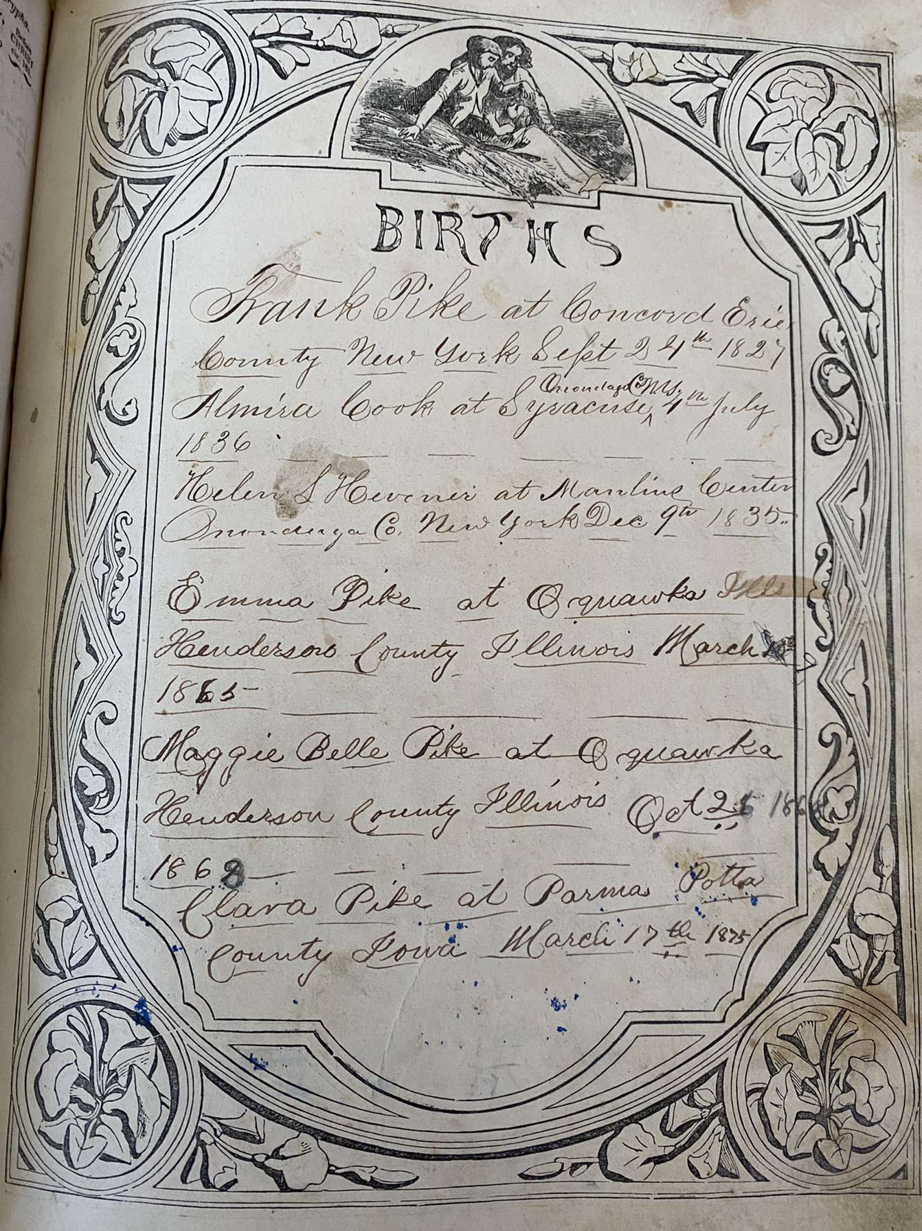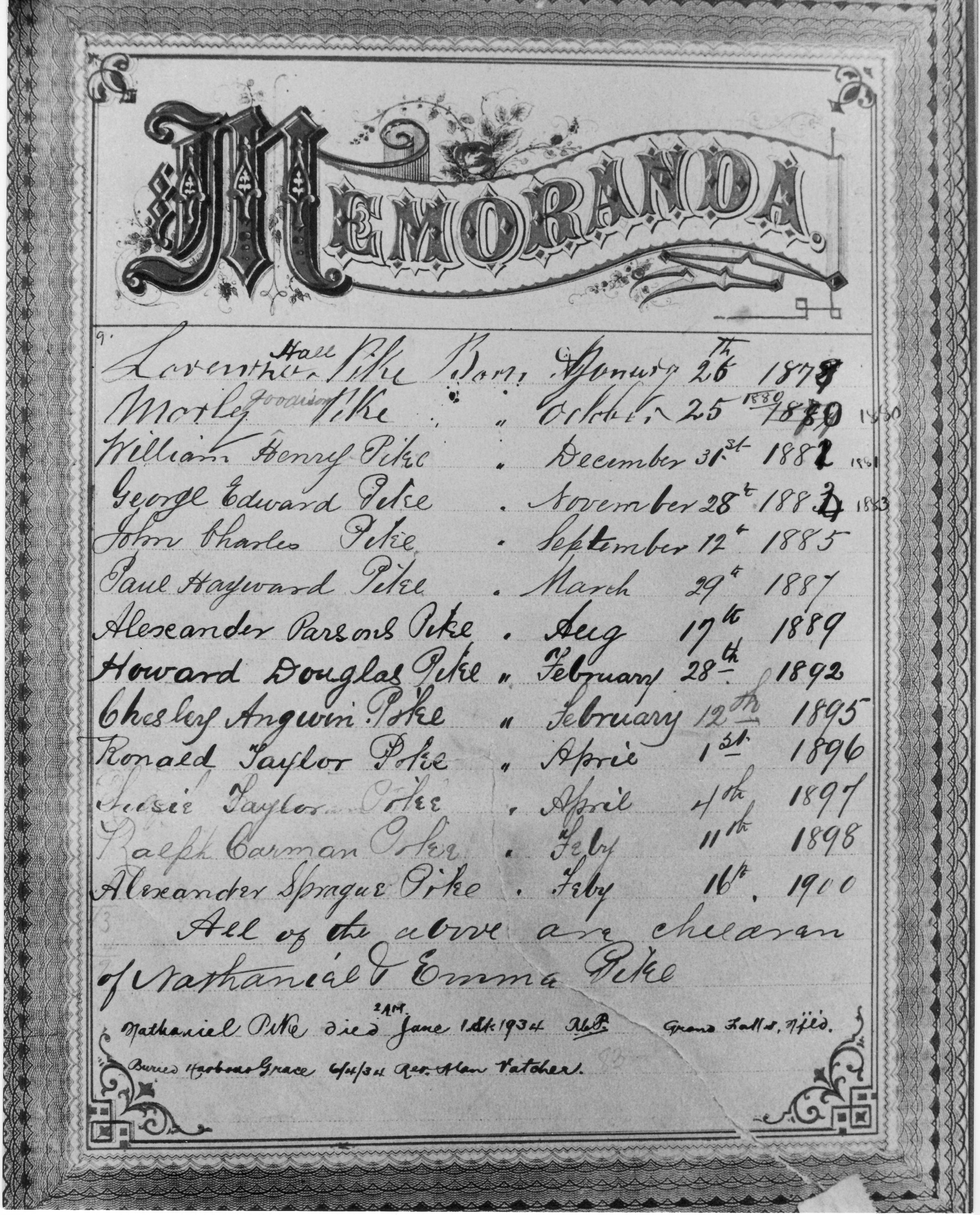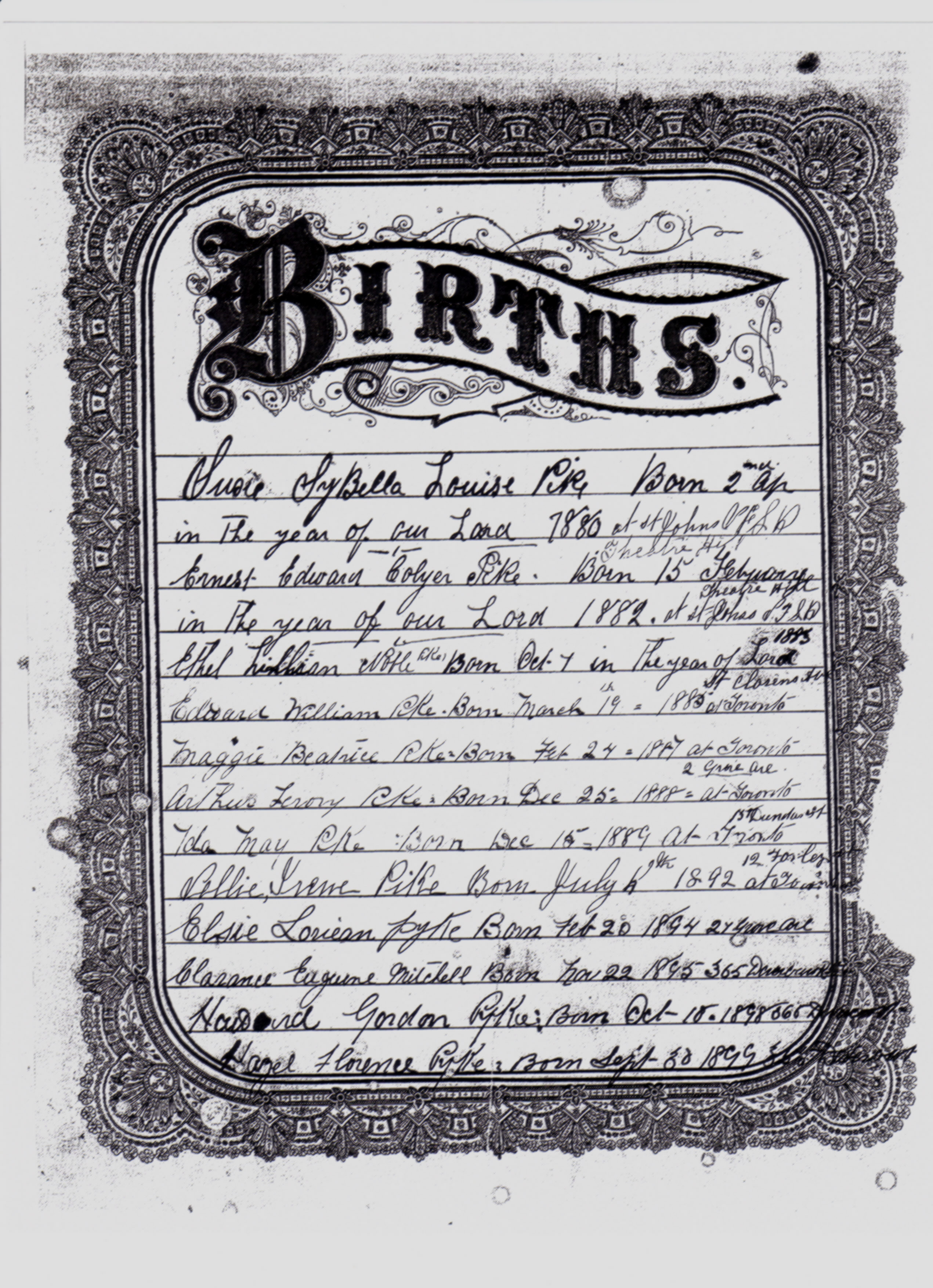 records were kept years ago, began with my grandfather & grandmother, Francis & Sophie Pike