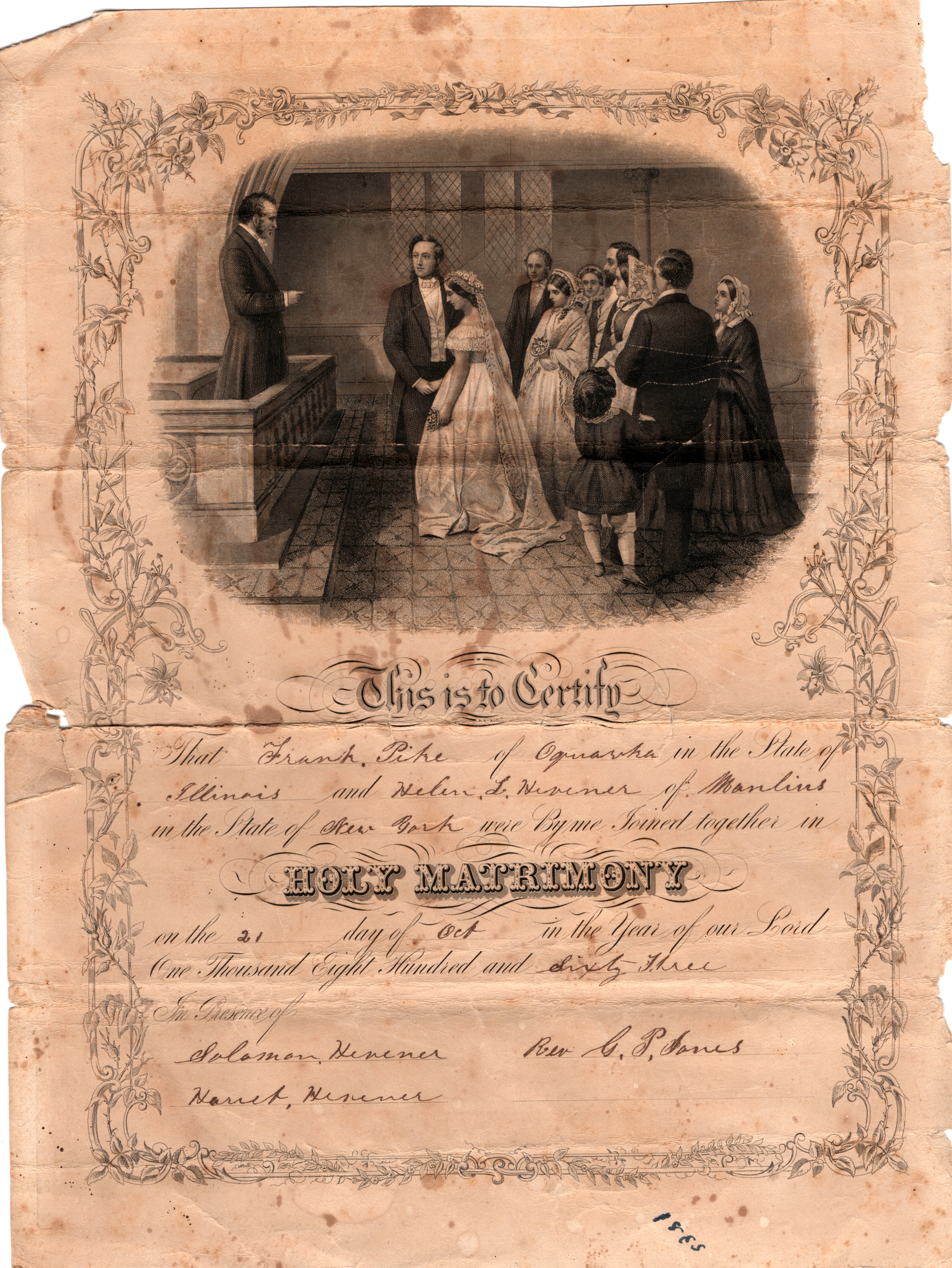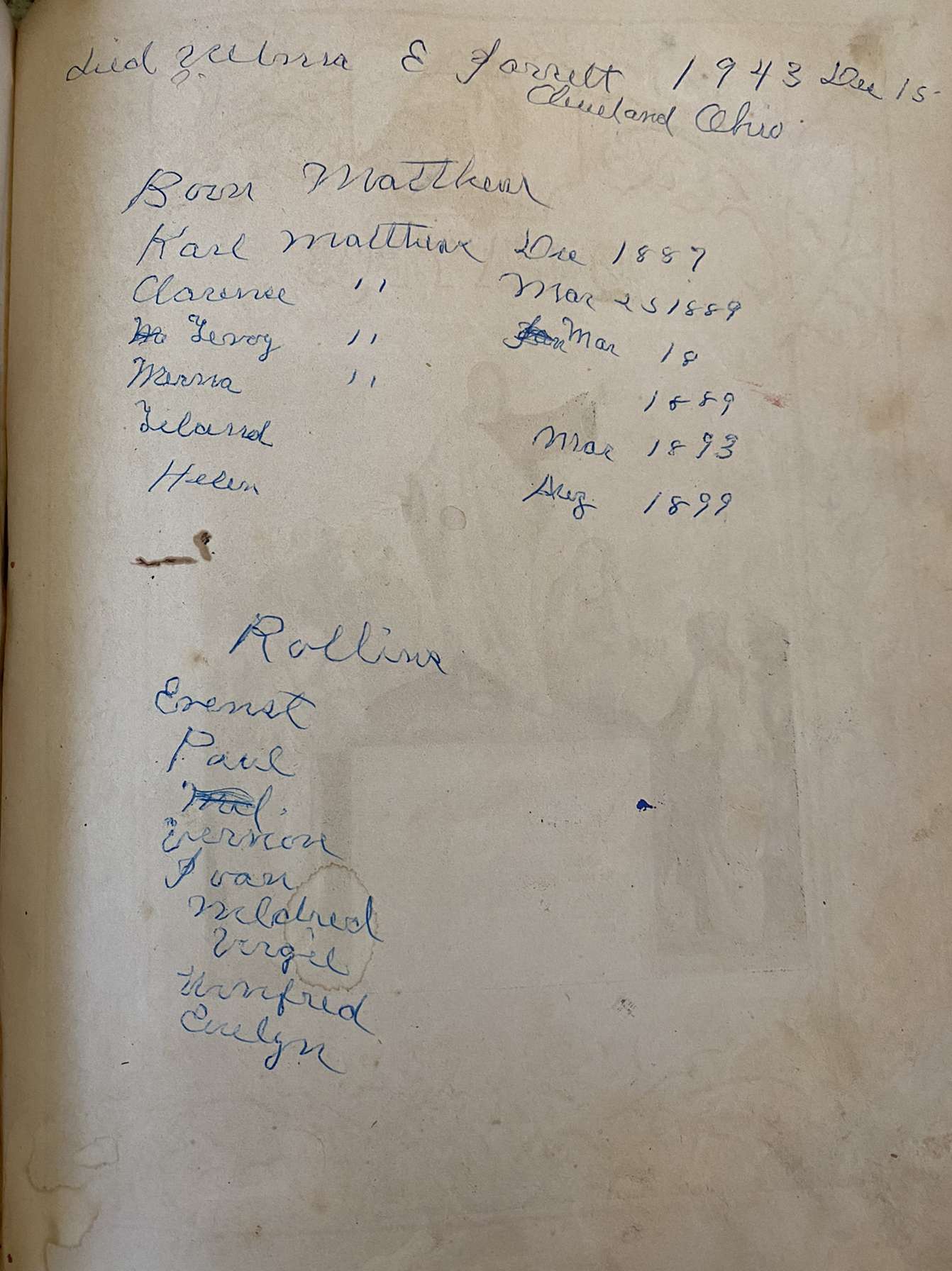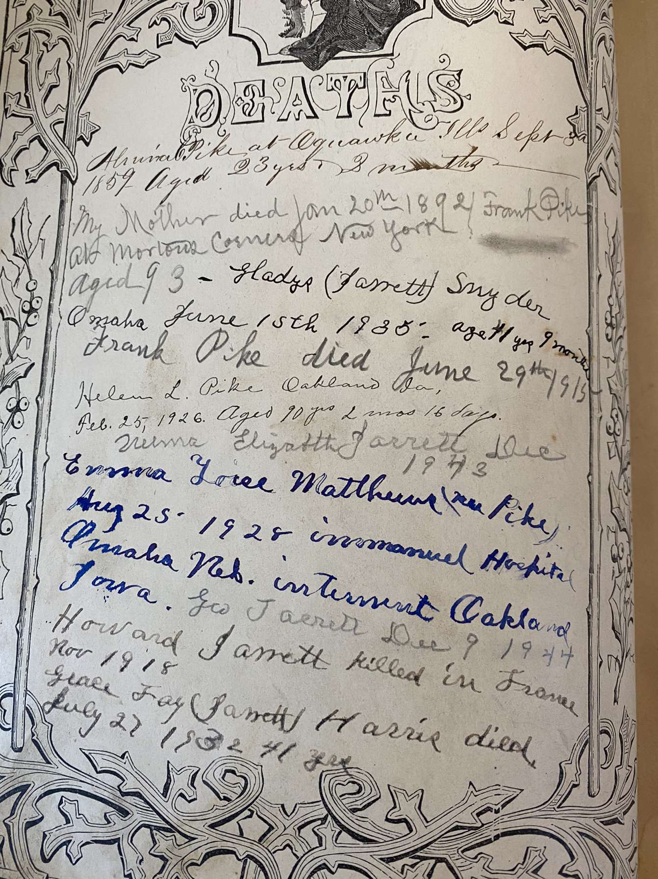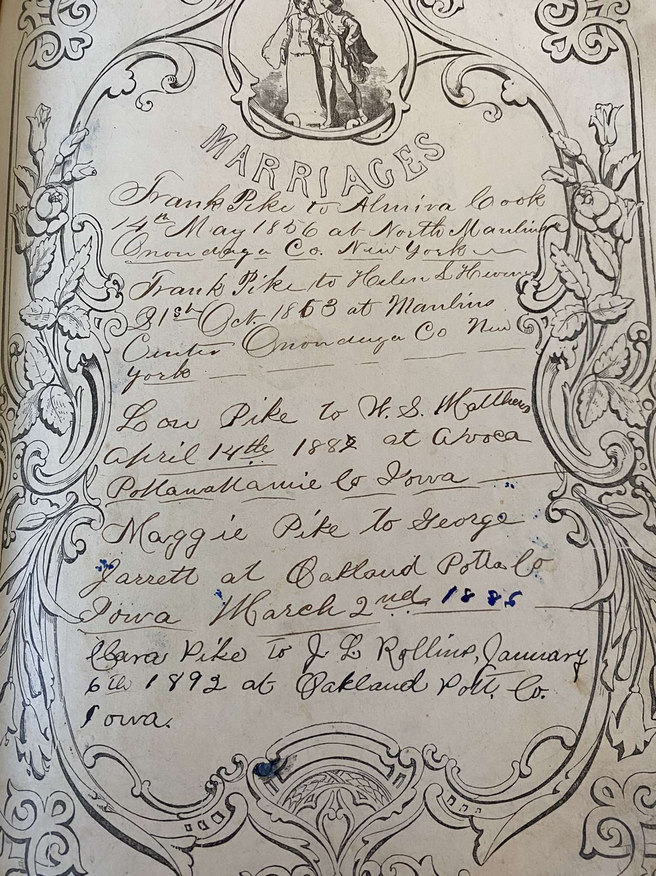 from a Bible believed to have been owned by Frank Pike and Helen Hevener.