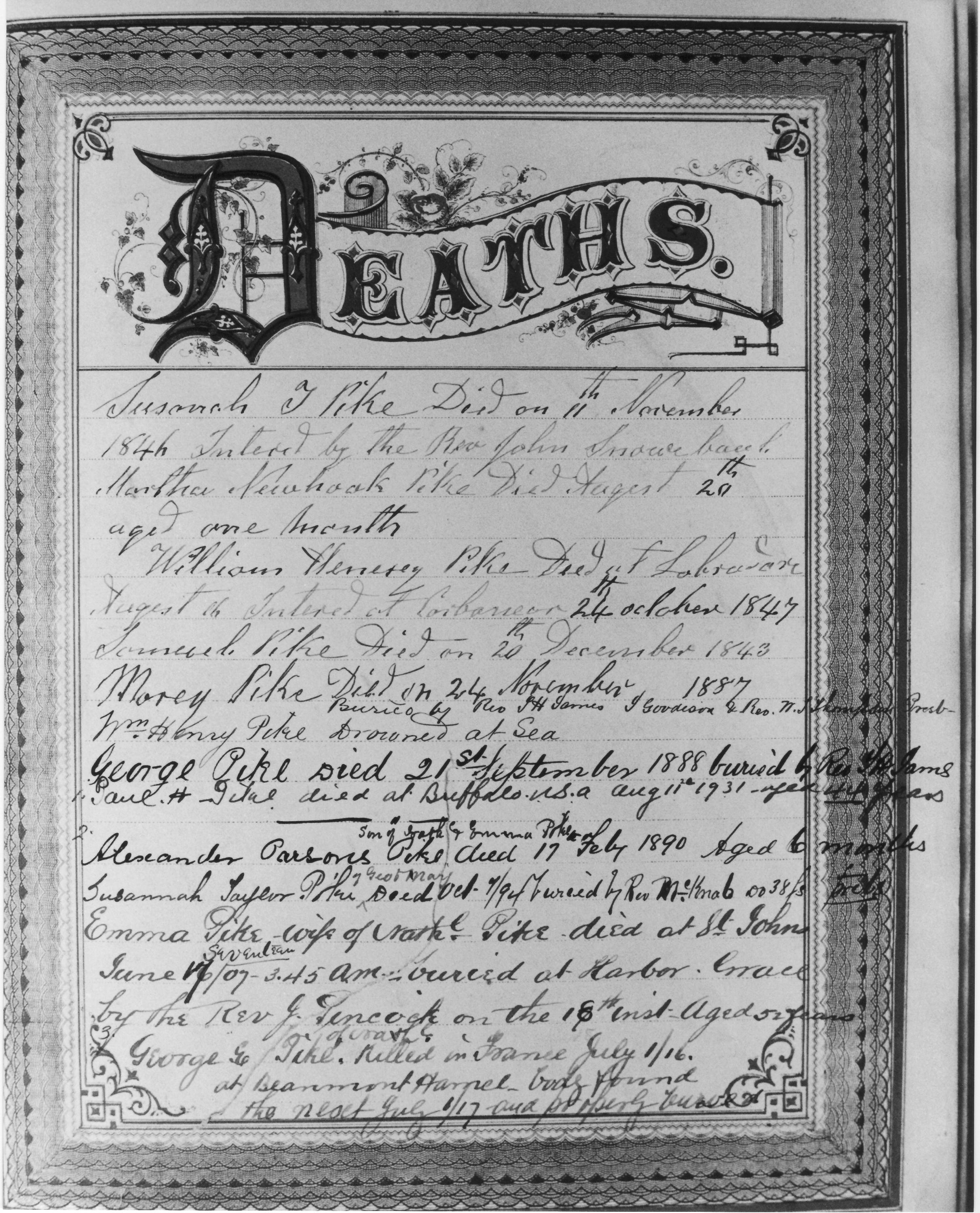 Pike family Bibles (especially those involving Pike families of Newfoundland) as well as other Pike family papers.